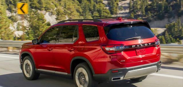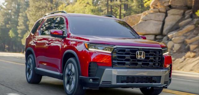2026款Pilot的外观变化相当明显。前脸采用尺寸更大的格栅,设计不再偏向梯形,而是更宽、更稳、更有气势。前后防刮护板也重新塑形,视觉层次更鲜明,根据不同车型提供银色或黑色处理,整体风格更贴近本田最新的SUV家族设计。