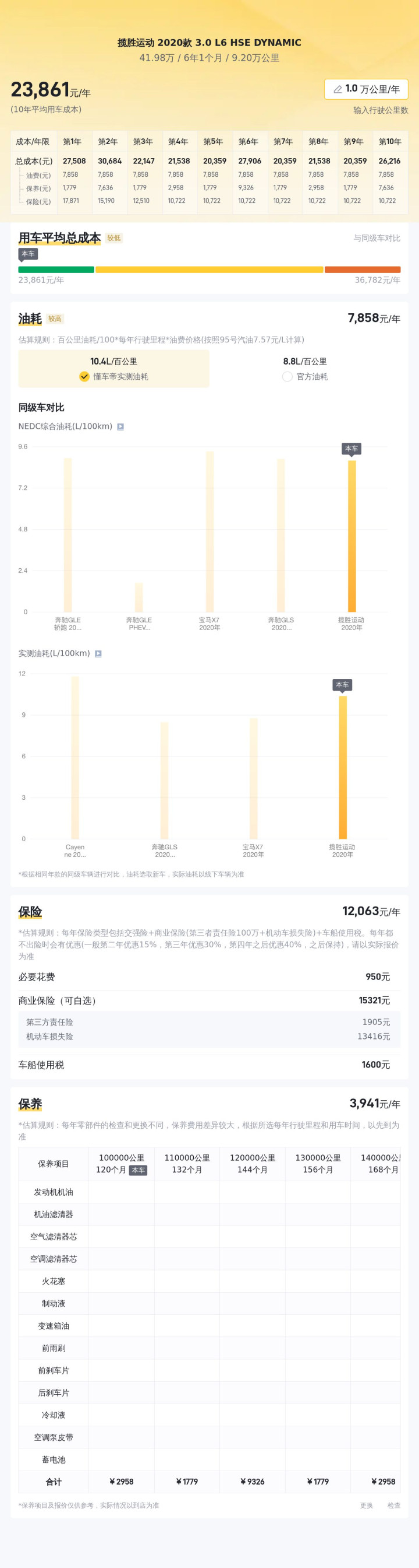 用车成本方面,根据大数据统计,该车型的10年平均用车成本大约在23987元/年,具体用车成本还是要根据车辆的实际使用情况而有所不同。